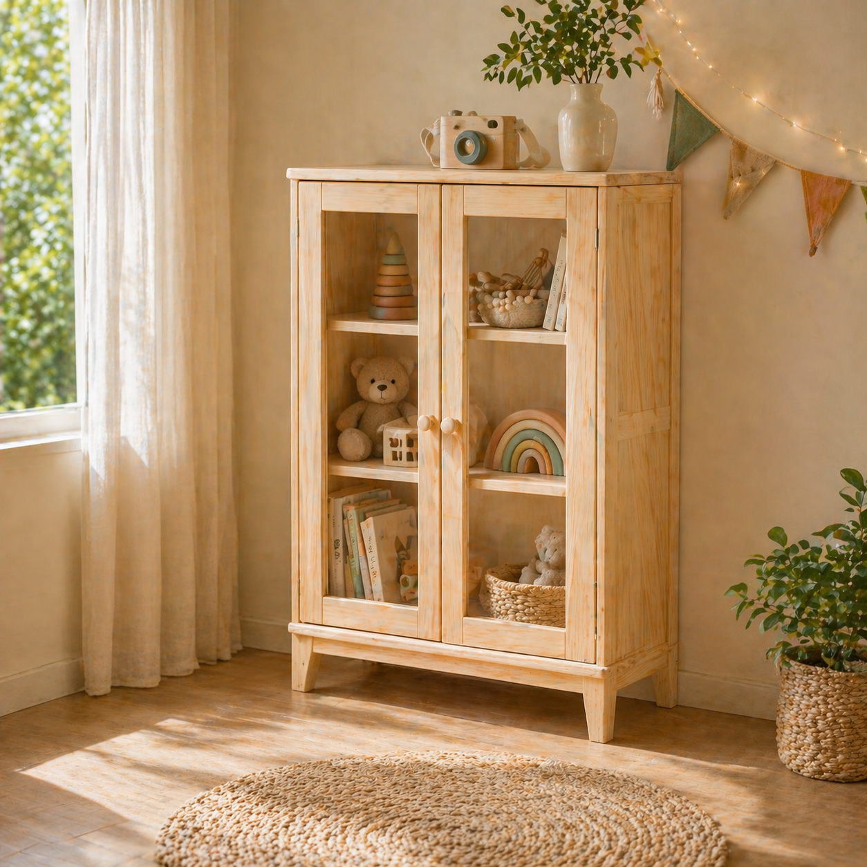 Vetrina in legno e vetro temperato con ripiani regolabili marrone