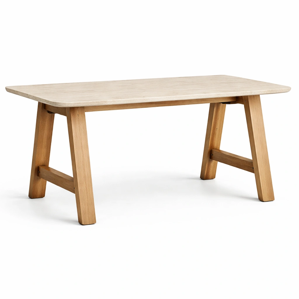 Materiale: Piano in legno di rovere, gambe in legno massello di rovere